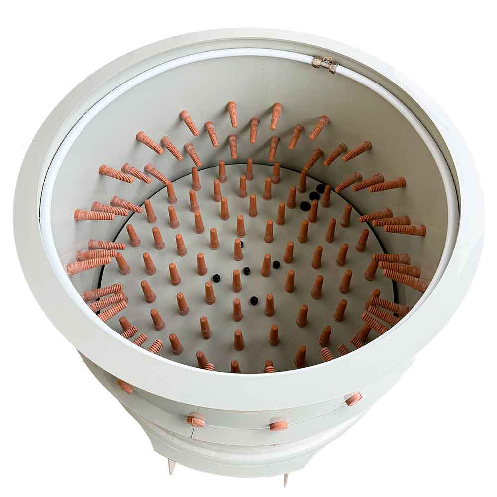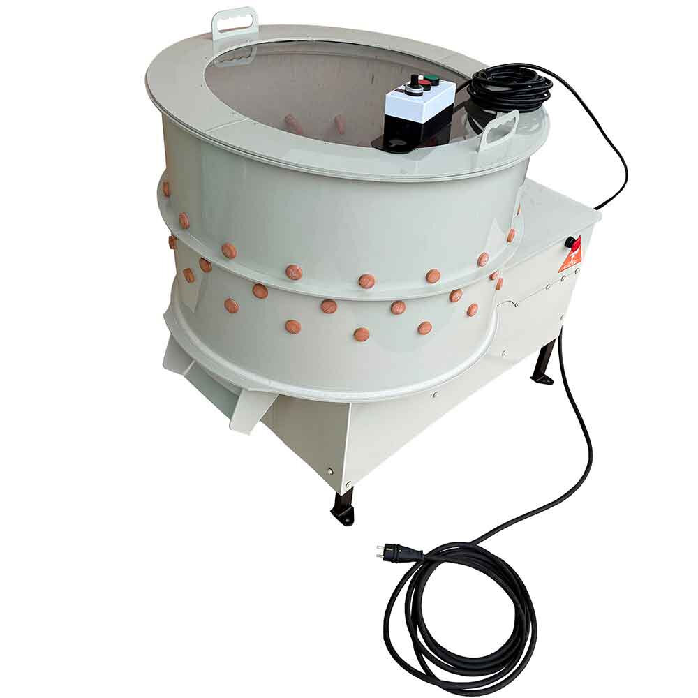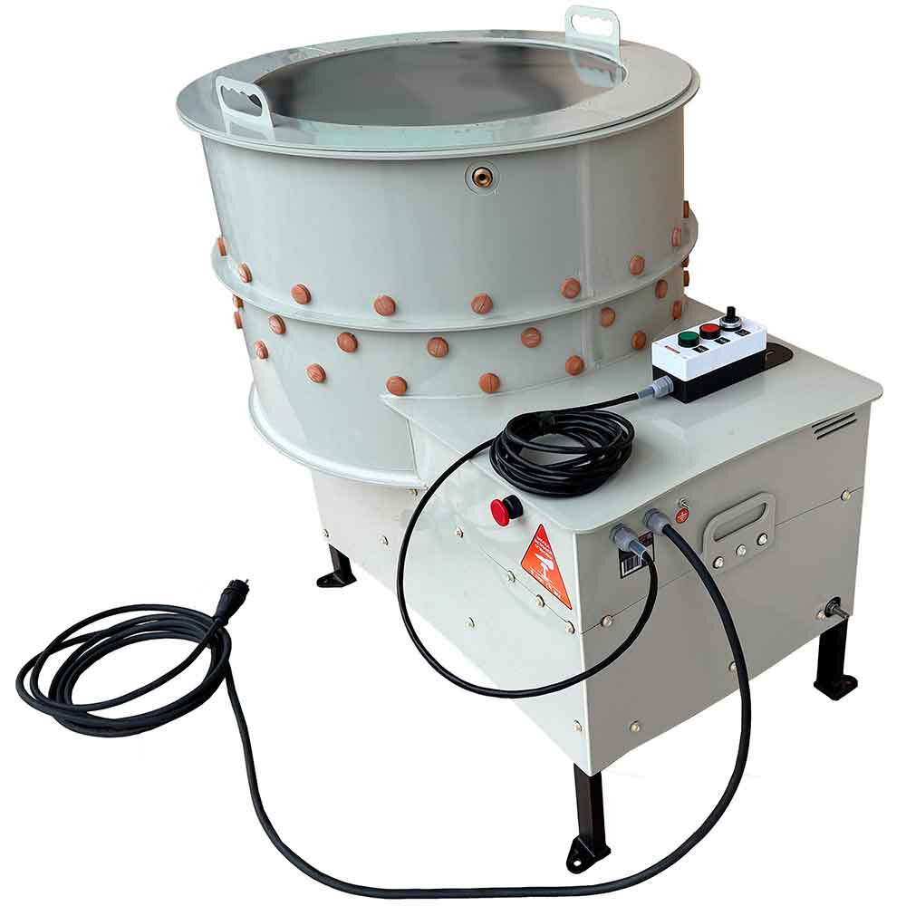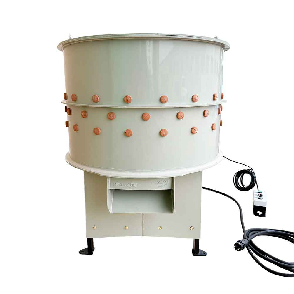 Перосъёмная машина Plucker 700UP (universal – универсальная, pult – с выносным пультом управления) – электрическая перосъёмная машина центробежного типа, предназначена для механического ощипывания кур, уток, цыплят бройлеров, гусей, индюков, а также другой крупной птицы общим весом до 20-25кг.