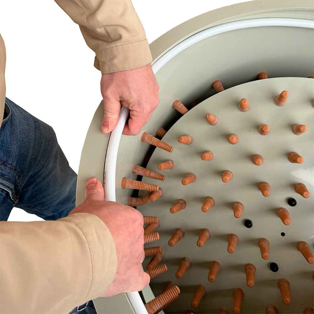 - Для смыва пера, очистки рабочей области и тушки птицы в комплекте Plucker 700U предусмотрена система орошения с выводом на стандартное подключение сантехнической трубы или шланга с резьбой 1/2”.