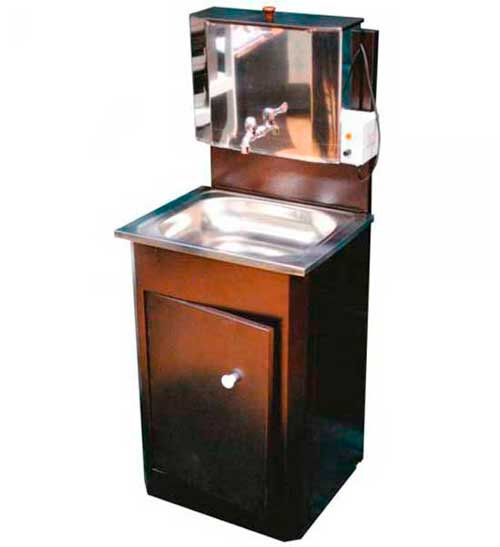 На высоте 80 сантиметров от уровня пола располагается накладная мойка с подогревом, которая изготовлена полностью из нержавеющей стали.