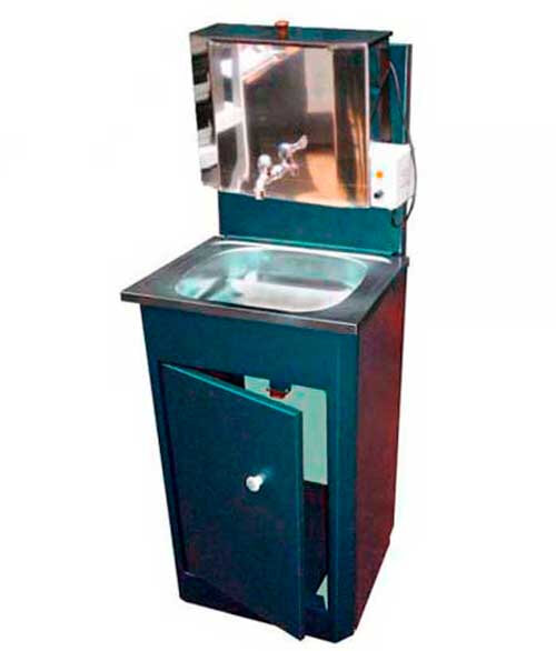 Тумба умывальника для дачи изготовлена из оцинкованной стали и окрашена порошковой краской.